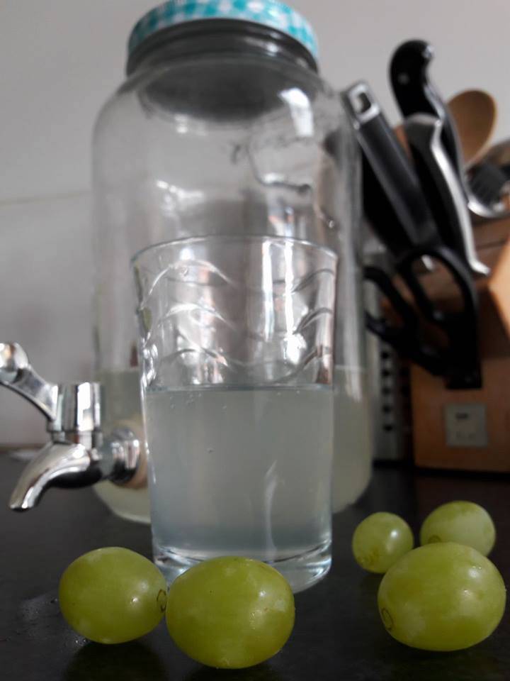 Blend de druiven kort met citroensap en haal dit door een kaasdoek/schone theedoek.